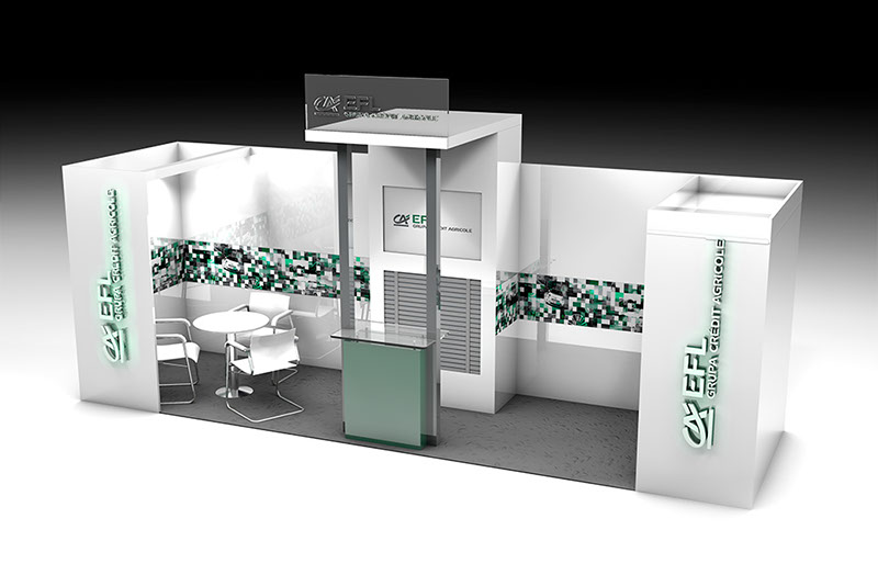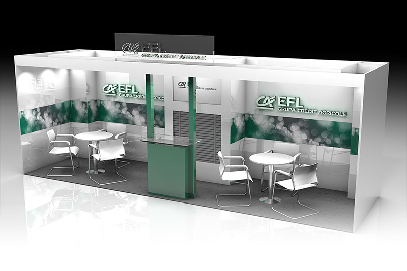 w 3D. Dzięki najnowszej technice komputerowej wizualizujemy przestrzenie wystawiennicze, projektujemy stoiska i aranżujemy miejsca, których na pierwszy rzut oka zagospodarować się nie da.